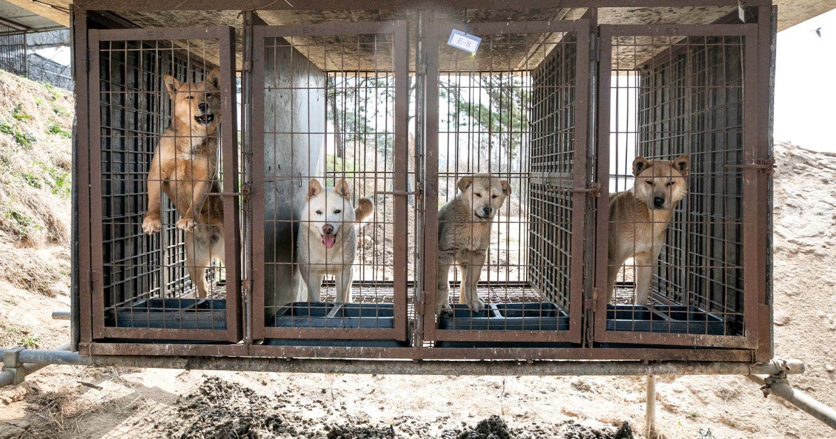 The farm, located in Cheongju, South Korea, had been operating for 40 years. There, an untold number of dogs had been reared for slaughter over the years, kept in tiny wire cages. Some lived in the same building dogs were slaughtered in. They likely watched other dogs get butchered before it was their turn to be killed.