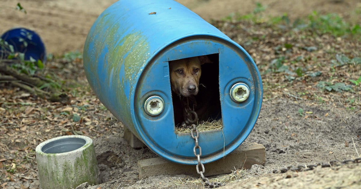 - Throughout the properties, many of the dogs were on heavy chains with plastic barrels or makeshift structures as their only source of shelter, while others were found stepping in their feces in filthy outdoor hutches and pens.