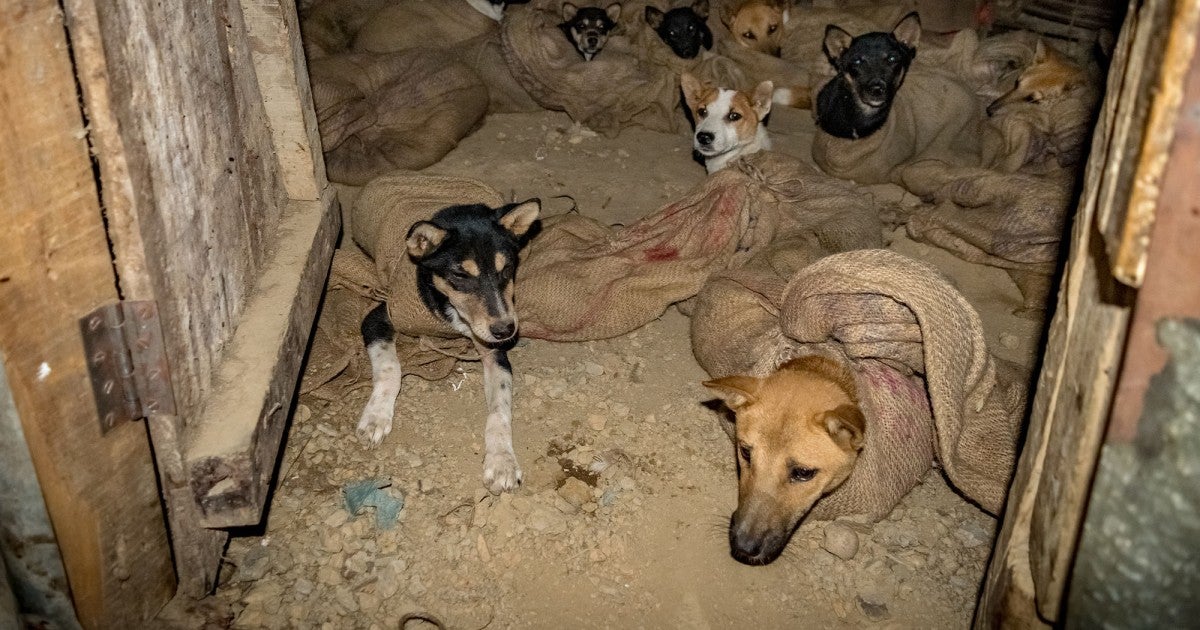 The dog meat trade in India is exceptionally brutal. Dogs are taken from the streets, and pets are stolen from their communities to supply the trade. The dogs are tied up in jute sacks with only their heads exposed, their mouths either tightly bound or stitched shut to keep them silent. They are then transported many miles to markets on the back of trucks. During the transport, the dogs remain confined in these sacks, deprived of movement, food, and water. Once they reach the market they are displayed in the sack and await slaughter. The killing methods are gruesome, with dogs being clubbed to death out of public view but in full view of other dogs. Although India’s Food Safety and Standards Act 2006 and associated regulations make the dog meat trade and consumption illegal, the practice persists in some states in India mostly in the northeastern states.