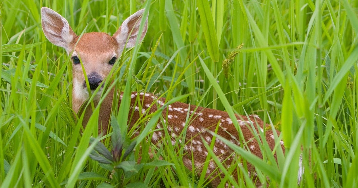 People often mistakenly assume that a fawn (baby deer) found alone is orphaned. If the fawn is lying down calmly and quietly, their mother is nearby and they are OK. A doe only visits and nurses their fawn a few times a day to avoid attracting predators. Unless you know for sure that the mother is dead, leave the fawn alone.